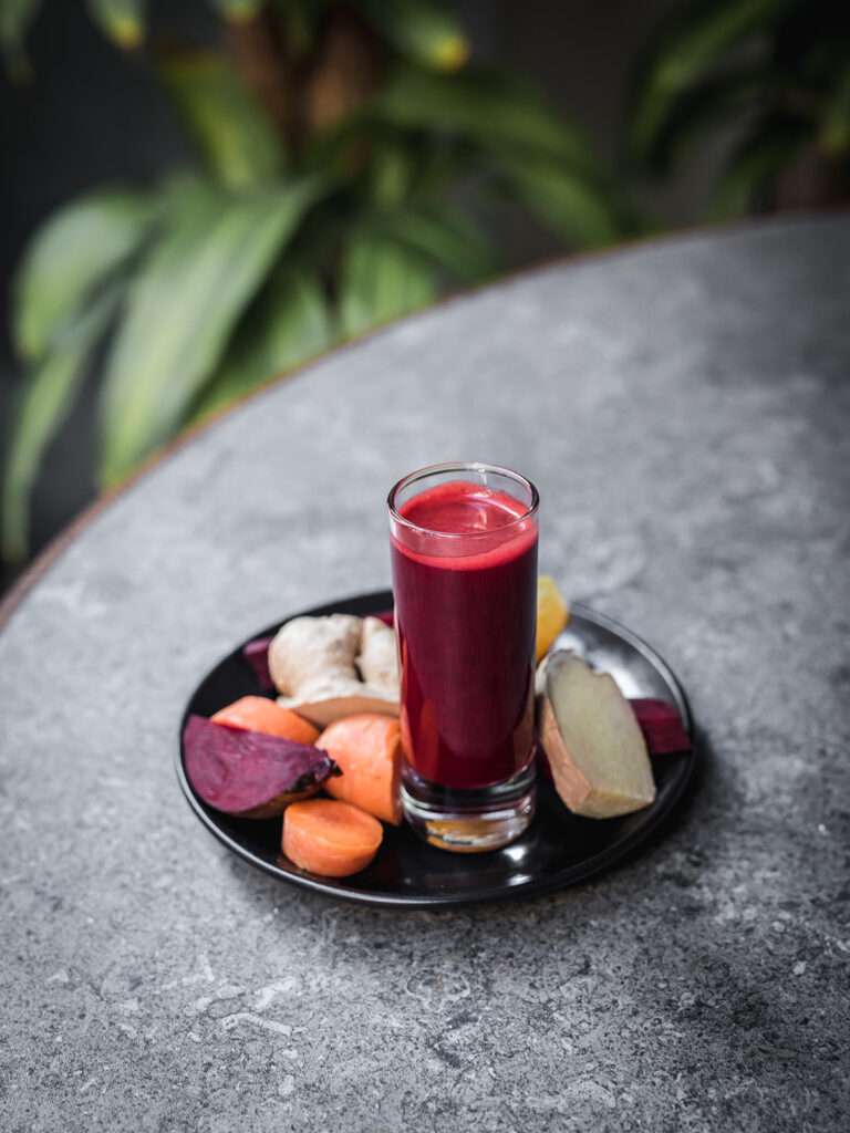 Shot de zanahoria, remolacha, limón y jengibre