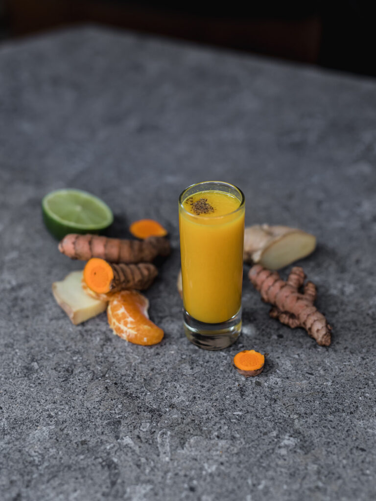 Shot de naranja, limón, cúrcuma y jengibre
